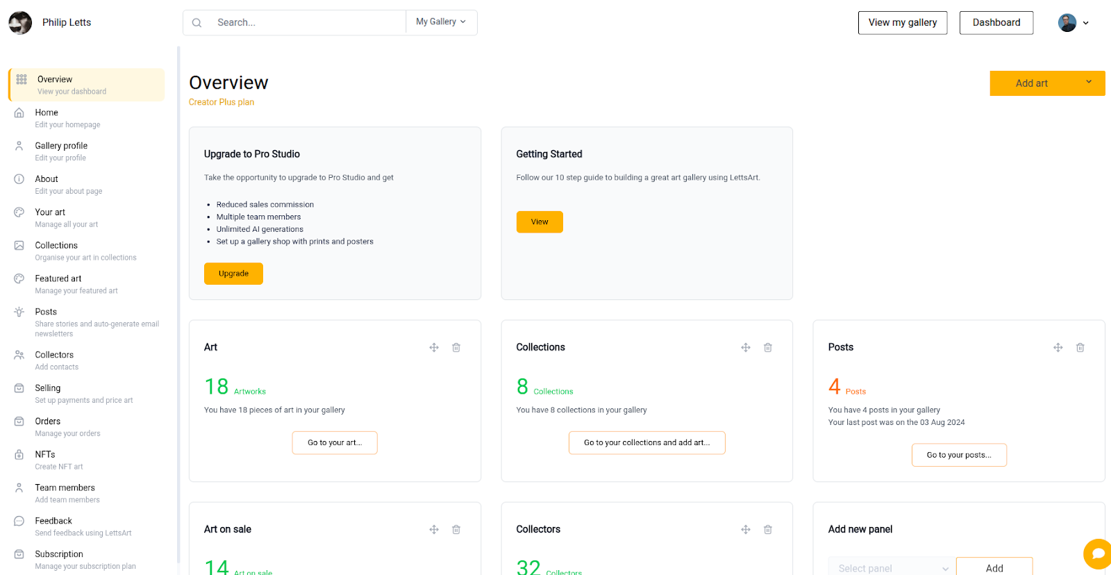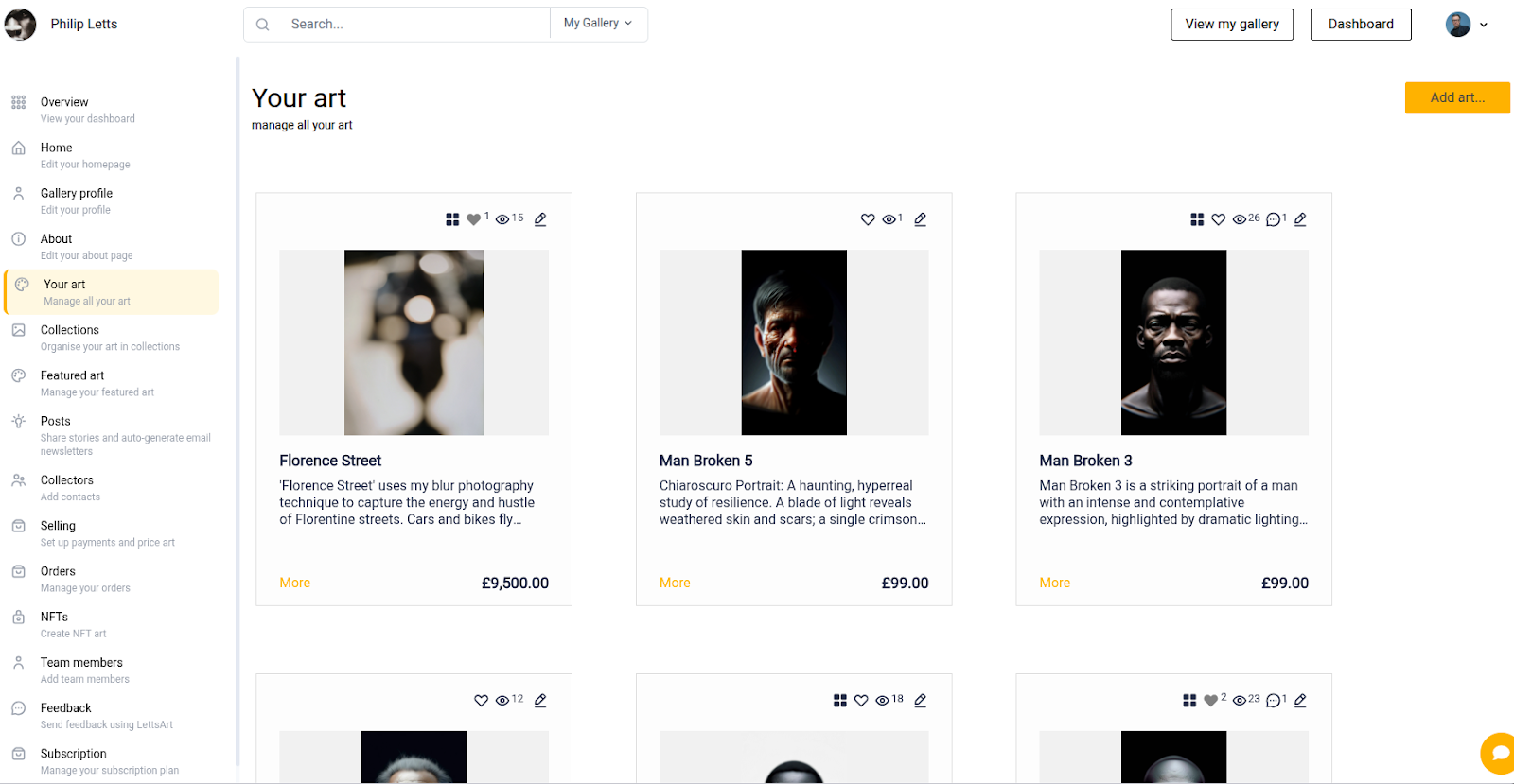 Spend More Time Creating. You’re an artist or gallerist. We get it. You don’t want to spend time on admin and IT. That’s why LettsArt supports every aspect of your art business, integrating everything you need in one place. We leave you to focus on creating.